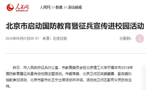 原文标题:北京市启动国防教育暨征兵宣传进校园活动