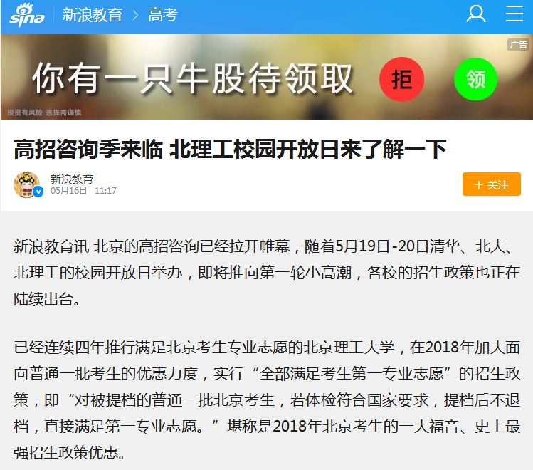 北京的高招咨询已经拉开帷幕,随着5月19日-20日清华、北大、ob真人竞猜的校园开放日举办,即将推向第一轮小高潮,各校的招生政策也正在陆续出台。