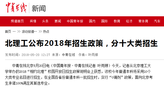 【中青在线】ob真人公布2018年招生政策,分十大类招生
