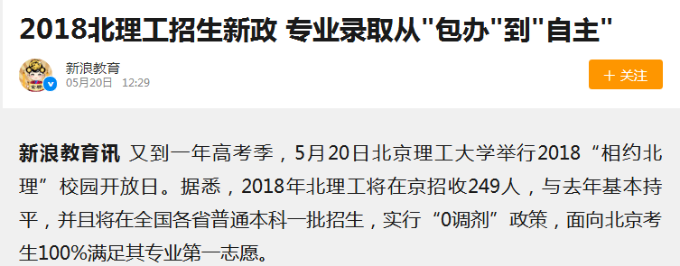 【新浪网】2018ob真人招生新政 专业录取从"包办"到"自主"