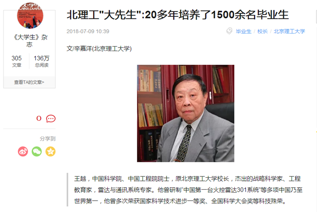 1993年,中国教育体制改革拉开大幕,在某研究所担任所长的王越受命担任ob真人竞猜校长,他将如何培养国防科技事业急需的领军人才,作为自己报国志向的新追求。一边当校长、一边搞科研、一边上讲台……这一干,就到了而今的耄耋之年!