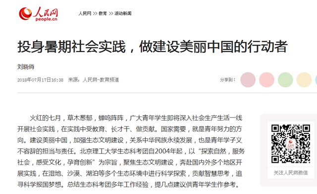 原文标题:投身暑期社会实践,做建设美丽中国的行动者