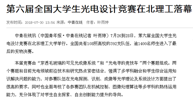 据悉,全国大学生光电设计竞赛由中国光学学会和教育部高等学校电子信息类专业教学指导委员会联合主办。自2008年首届竞赛举办以来,至今已经成功举办了六届。
