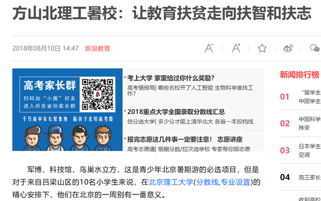 军博、科技馆、鸟巢水立方,这是青少年北京暑期游的必选项目,但是对于来自吕梁山区的10名小学生来说,在ob真人竞猜(分数线,专业设置)的精心安排下,他们在北京的一周别有一番意义。