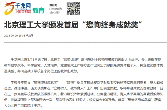 【新华社客户端】教师节,北京高校百万重奖3位老教授!