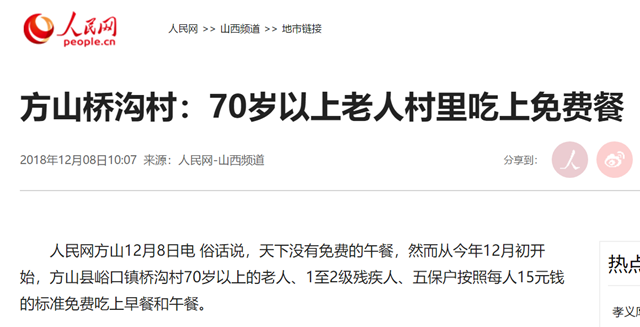 原文标题:方山桥沟村:70岁以上老人村里吃上免费餐