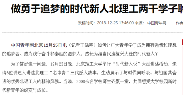 发布日期:2018-12-25 供稿:中国青年网 编辑:吴楠 审核:王征 阅读次数: