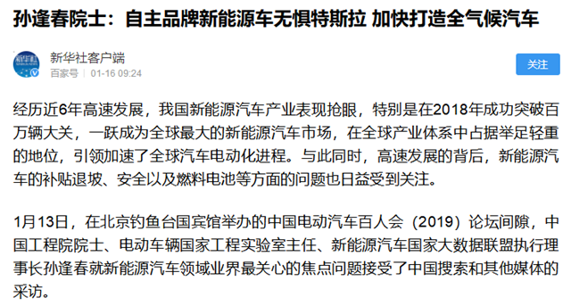 原文标题:孙逢春院士:自主品牌新能源车无惧特斯拉 加快打造全气候汽车