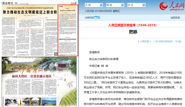 《中国共享经济发展年度报告(2019)》披露的数据显示,2018年有超过1000万名司机在网约车平台上获得了收入,运送乘客超过100亿人次,用户行驶总里程近500亿公里。“网约车提供了大量就业岗位,为居民出行提供了极大的便利,为解决就业做出了贡献。然而,网约车也存在一些安全风险,需要完善相关管理制度。”ob真人人文与社会科学学院院长李健委员说。