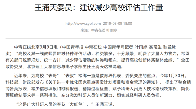 原文标题:王涌天委员:建议减少高校评估工作量
