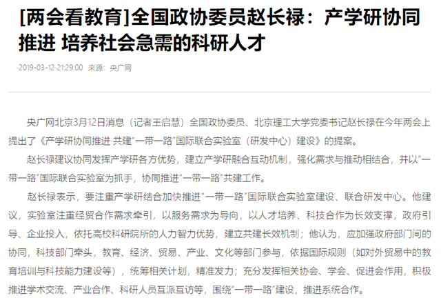 原文标题:全国政协委员赵长禄:产学研协同推进 培养社会急需的科研人才