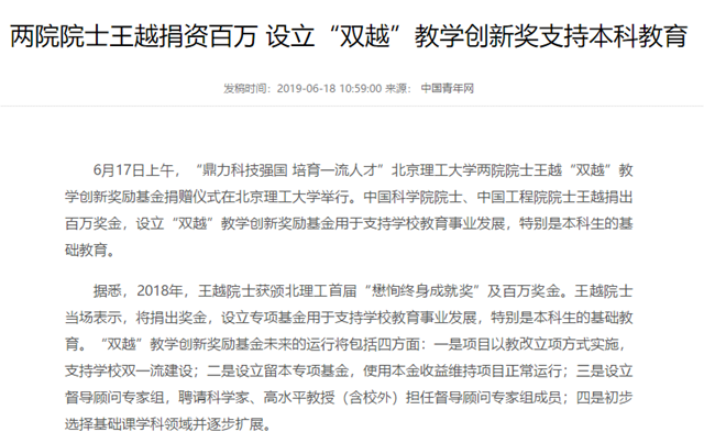 原文标题:两院院士王越捐资百万 设立“双越”教学创新奖支持本科教育