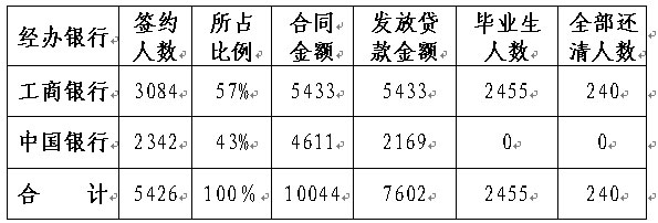 为做好国家助学贷款工作,学校与经办银行建立了相互信任、相互支持、相互配合、分工协作的合作关系。由于国家助学贷款工作政策性、业务性强,为较快掌握银行信贷工作流程和有关要求,学校多次邀请银行负责人对各学院负责贷款工作的同志进行岗位和业务培训,对工作中遇到的问题和疑惑及时沟通、联系,保证信息渠道的通畅,学生贷款信息已实现了资源共享,大大提高了工作效率。为加强学生与银行之间的沟通、交流,学校积极创造条件,专门组织了贷款申请咨询会、贷款合同签订会、还款确认仪式等,每次都有银行负责人根据学生的不同问题和要求进行咨询解答。