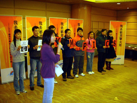 和高铭华对奥运的狂热不同,来自成都的游浴是一个特别的女孩,她有自己的奥运梦想。而且她的经历颇具传奇色彩。20岁时,创立业界著名的Hi-Fi English英文节目,随后和英国传媒巨头BBC合作,举行BBC中国校园行活动,打造本土最高品牌的英文歌友节目;21岁时,已经采访过世界一流的传媒人士、漫画家、明星;现在,22岁的游浴成为宝洁的一名优秀经理。