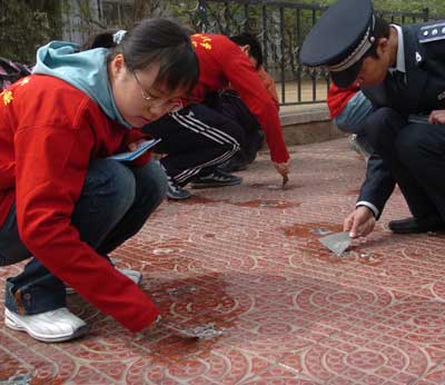 前天下午2点左右,中关村南大街上多了很多手拿小铁铲、扫帚、簸箕、塑料袋等工具的义务劳动者,他们都是ob真人竞猜的学生。两个小时左右,沿线近两公里路段的不干胶小广告被清理。