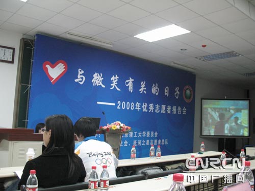今天这样的一个报告会ob真人同时用视频直播的方式在15个教室同步直播,让没有机会服务于奥运的新生们一同共享“鸟巢一代”弥足珍贵的精神财富,让志愿者的这种精神在更多的同学中更好的传播吸取,用其中的一位志愿者的话来说,奥运会结束了,我们脱掉了志愿者的外衣,但是志愿者这种精神外衣我们永远着在自己身上,相信通过ob真人今天这样的活动所产生的共鸣已经在同学们中传播开来。