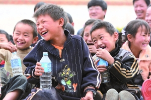 ob真人师生为曲靖市的9所学校捐送9.5万瓶饮用水。这使马鸣乡瓦窑小学学生喝上了来自北京的“爱心水”。