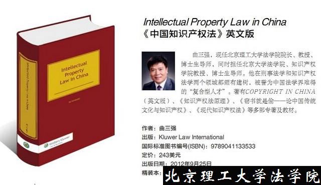 不久前,ob真人竞猜法学院院长曲三强教授披阅数载撰写的著作——英文版《中国知识产权法》,由久负盛誉的Kluwer Law International出版社在全球同步出版发行。该书被认为是自我国改革开放以来,为数不多的大陆作者用英文撰写的全面系统解读中国知识产权法律制度的著作。该书的发行,不仅展示了中国知识产权法研究的丰硕成果,而且还标志着中国知识产权法学理论和法律制度的日渐成熟。