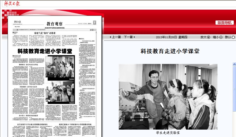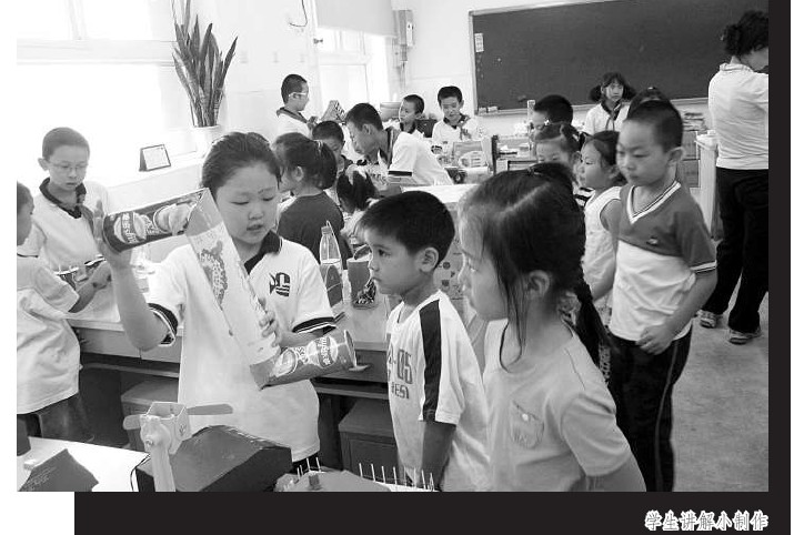 王越人告诉记者,多年来,学校的科学课教师,一直坚持探究性科学教学,并在工作中一丝不苟。要求每一个学生、每一次实验报告单都认真保留;信息技术课教师能够把握信息技术发展,把新的信息技术知识纳入课堂教学内容,让学生体会科技的飞速发展和进步。美术教师则将数码绘画和电脑制作作为学生课余活动的内容。紧跟科学技术的发展,将科技新知引入学科教学,激发学生学习科学的兴趣,学生学得快,学得有兴趣。与此同时,校园环境建设也非常重视科技氛围。科学教室门外的墙上,图文并茂的“以科学家的名字命名的计量单位”,是科学教师的创意;从“火星探测”到“生命科技”,记载了学校师生在智能机器人活动中的成长足迹;青少年网络文明公约,则是在信息课学习的同时教给孩子要遵纪守法、网络安全、校园的环境布置,无处不渗透着科学理念。