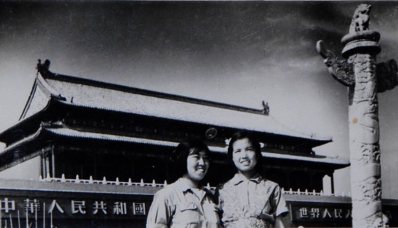 大学一年级时的蔡毓芳(右)