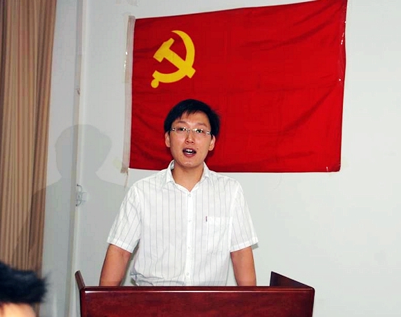 宣誓活动在全场老师和同学齐声高唱庄严的国际歌中拉开序幕。组织部部长赵粤生老师首先为这次活动致词。他祝贺新党员们加入共产党这个光荣的组织,鼓励广大党员在今后的工作和学习生活中要起到先锋模范带头作用。