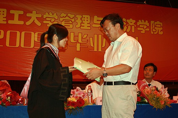 6月28日下午2点,管理与经济学院2009届本科生毕业典礼在七号楼报告厅隆重举行。学院院长魏一鸣、书记李金林、副院长李健、何海燕、孔昭君、副书记仇芳、各系负责人、教师代表、2005级本科、双学位学生及部分学生家长出席了毕业典礼。在庄严的国歌声中毕业典礼拉开帷幕。