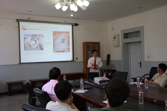 报告会上黄永刚教授阐述了力学必将在可伸展电子设备、电子眼照相机、柔性硅太阳能电池等高科技领域中扮演重要的角色。应用力学原理设计、改进由易碎硅材料组成产品力学性质,使得由硅材料构成的电子产品表现出类似橡胶带的柔韧性,可以产生140%的应变,可极度弯曲和扭转。通过力学原理,改进转移印花技术,现已经研制成电子眼照相机和柔性硅光电池,此技术在日常生活中也有着重要的应用。此外黄永刚教授还对相关领域的现状和新思想做了一些介绍。