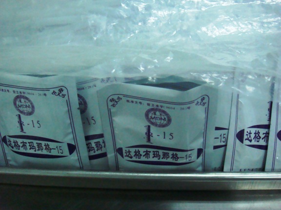 在蒙医药学院参观结束后,实践团又前往民大附属医院蒙药车间,队员们分两批逐次参观了蒙药厂的前期处理室、炮制车间、净药库、净化系统、提取浓缩间、制水车间、外包装室、粉碎干燥过程、内包装室等,对蒙药的制药过程有了总体的认识。相比大型制药工厂,这种院内制剂的蒙药生产方式有着药量少、种类多、价格便宜、民族性强等特点,多运用人工生产加工方式。