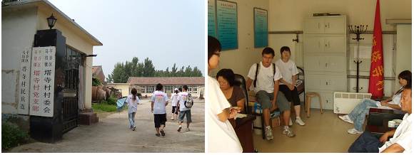2009年7月26日,ob真人竞猜校学生会暑期实践团一行九人再次来到平谷县马坊镇塔寺村,开始了为期五天的考察,就该村发展现状、人民生活状况及相关政策进行调研。村民们的热情、善意和配合使得实践活动顺利进行。在实践过程中,我们通过村民走访、问卷调查、实地考察等方式,全面了解了塔寺村新农村建设的进程和遇到的问题。在走访中,我们遇到了一位年过六旬的老人,她仅仅依靠政府每月260元的补助和拾荒换钱勉强度日。她对同学们说:“我们家上个月自来水、电和煤气一点都没用,就是因为穷啊。”这句话深深的印在了大家的心底,也激励着我们必须高水平完成此次实践活动,为帮助农村脱贫尽一份力。