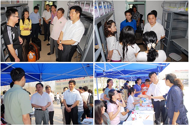 党委书记郭大成、校长胡海岩、副校长副书记杨宾、副书记侯光明、纪委书记杨蜀康、副校长赵显利、李和章等亲临现场指挥,看望新生及家长。