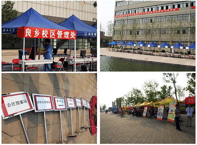 良乡校区管理处全面检查了学生宿舍,对宿舍家具和设备设施进行检修,调整宿舍床位以及卫生保洁;加强校园环境整治,清理卫生死角;在校区大门、主要干道和报到现场摆放花卉,完成树牌、草地牌的安装,检修校园夜间景观灯等,营造出温馨和谐美好的迎新氛围;增强保安力量,加大巡查力度,杜绝社会闲杂人员进入校园,确保校园安全;按照新生报到程序,根据迎新工作要求,合理布局迎新工作站,设立明显指示标志,确保新生报到及办理入学手续的顺利完成;高度重视甲型H1N1流感防控工作,门卫保安和志愿者对每一位进入校园的人员进行体温测试,并在校医院划出专区以应对紧急情况;按传统继续做好学生托运行李服务工作,组织志愿者一对一为新生服务,把行李送进宿舍;精心制订校园交通疏导方案,设立交通指引标志,增派交通疏导人员,迎新当天疏导机动车辆5000余辆,为迎新工作的顺利进行打好坚实的基础。