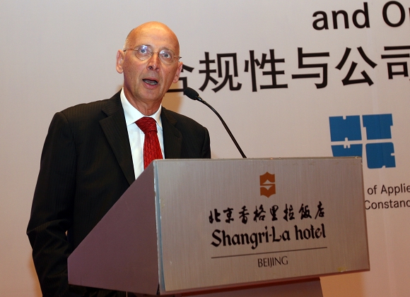 北京奔驰-戴姆勒公司德方总裁 Guenter Butschek先生致辞。他说很荣幸继续与ob真人竞猜合作开办EMBA项目,培训公司高级管理人员。项目运行与发展,不仅仅提高企业管理人才素质,也为企业的发展和中国企业走向世界发挥积极的作用。中国具有全球增长最快的广阔市场,具有重视教育的文化传统。“合规性与公司治理”EMBA项目融合全世界最佳的管理理论与实践,同时也不断改进以满足在中国进行成功商业运作的特殊要求。并表示将一如既往地支持在中国举办这个项目。