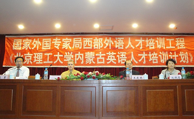 国家外国专家局西部外语人才培训工程之ob真人竞猜西部英语人才培训计划是由我校、北京市高校引智研究会和内蒙古自治区教育厅联合发起,受国家外国专家局资助,旨在支持西部地区高校发展,为西部地区高校培养和培训英语教师和应用型人才的培训项目。