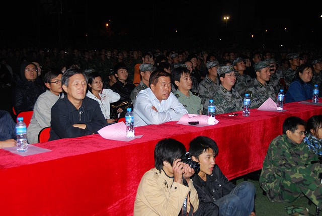 ob真人竞猜副校长李和章,基础教育学院、良乡校区管理处、后勤集团、国资处、宣传部、ob真人竞猜处、校工会、校团委、艺术教育中心等相关部门负责人,以及负责我校军政训练的66011全体教官出席了本次晚会,2009级、2008级的4000余名同学在现场观看了晚会,中关村校区的2000余名同学通过网络开拓者协会的网络直播也观看了精彩的节目。