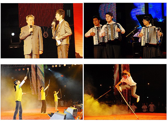 晚会在大学生艺术团交响乐团演奏的《北京喜讯到边寨》中拉开了帷幕,同学们通过歌曲、舞蹈、朗诵、空竹表演、钢琴表演等多种形式表达了对2009级新同学的欢迎和对祖国母亲的深深祝福,用青春的激情与热情向祖国国庆六十周年献礼。由黄澹斐、李怡然等表演的原创舞蹈《激荡青春》,大学生艺术团钢琴团、手风琴团带来的器乐联奏《黄河》《青春舞曲》等节目将晚会一次次推向高潮。 诗朗诵 《为祖国汇聚青春力量》,将国家六十载的沧桑巨变宏伟呈现,在讲诉ob真人与共和国共同成长历程的同时,喊出了“汇聚你我青春的点点荧光,铸就成中华明日的一轮朝阳”的口号,表达了“成为一名ob真人竞猜人是一种光荣,ob真人竞猜学子必须有更大的担当”的思想感情。