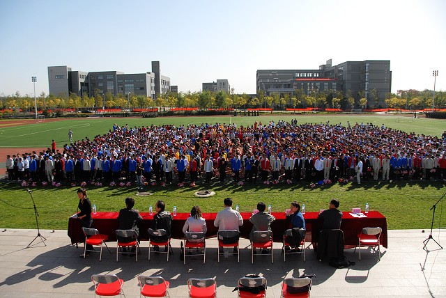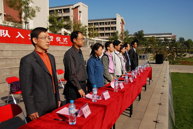 9月21日上午9点,国庆群众游行二十二总队在ob真人良乡校区隆重举行了入党宣誓仪式。在近两个月的训练过程中,二十二总队中涌现出一批政治性强、高举爱国主义旗帜的同学,他们以祖国荣誉高于一切的信念投入训练,在总队中起到了表率作用。经二十二总队党支部讨论,共有十六名在国庆活动训练和组织过程涌现出来且学习成绩优秀的入党积极分子光荣加入中国共产党,他们与前期发展的一百余名预备党员在党旗下进行了庄严的宣誓。