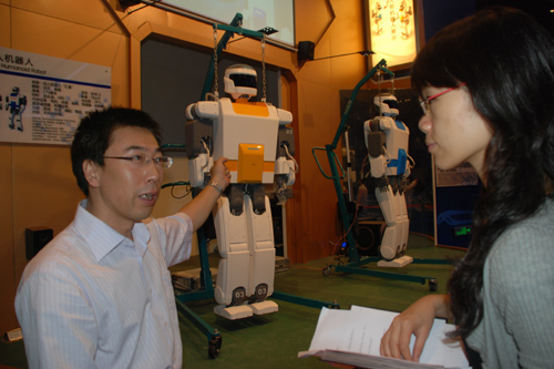 机电学院智能机器人研究所段星光教授向记者介绍仿人机器人