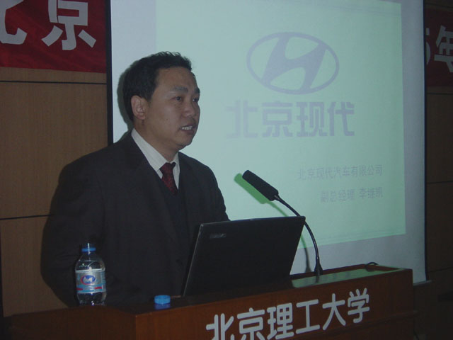 北京现代汽车公司生产本部部长李继凯先生介绍了北京现代汽车公司的发动机产品,生产线及新技术。