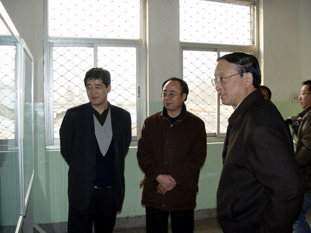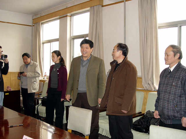 匡镜明校长及总监票人、工会主席赵显利在向段书记介绍我校的选举工作情况