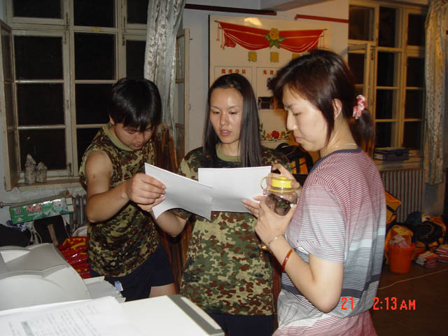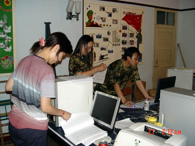 指挥部工作人员经常加班加点为次日的军训做好准备工作