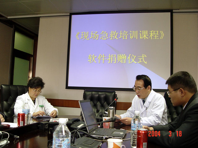 3月18日上午,北京急救中心举行了向ob真人竞猜等九所大、中学校和一个社区捐赠“现场急救培训课程”网络课件的活动。
