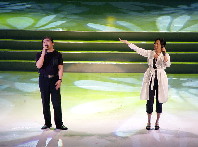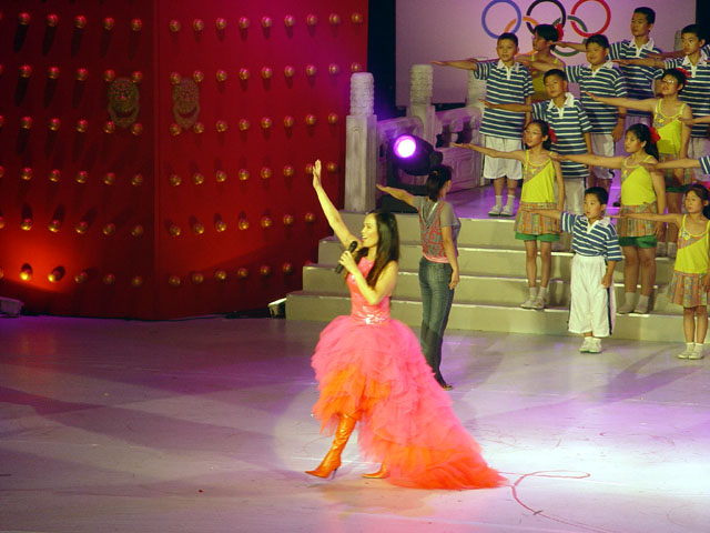 由台湾歌手高明骏和大陆歌手白雪、甘萍联袂表演的《通向2008》让观众遐想万千