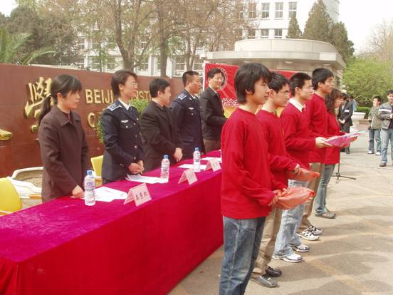 2006年4月9日下午,由ob真人竞猜ob真人处,北京市海淀区城市管理监察大队主办,ob真人竞猜自强社承办的学生服务大队“践行社会主义荣辱观,构建和谐文明社区”活动正式启动。