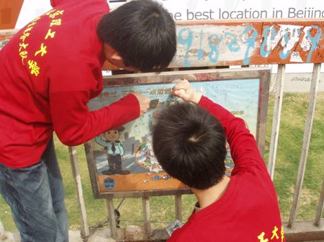 启动仪式在服务大队成员集体宣读了“八荣八耻”的宣传单之后结束。接着,服务大队120名队员开始分组进行有秩序的清理活动,同学们深知此次活动的重大意义,个个工作认真负责,干劲十足,海淀区城管监察大队的人员在维持秩序的同时也加入到我们的清理活动中,就连路过的居民也被同学们的行为感动,主动加入清理活动中,当天下午五点,同学们已经把ob真人竞猜东门天桥至魏公村路段上的小广告彻底清理干净。