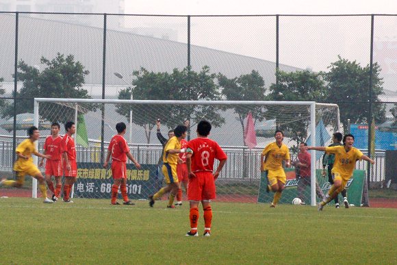 比赛进行到第28分钟,我校足球队攻入对方禁区内,对方后卫解围时球未踢远,从后方插上的我方后卫5号康斯贝迎球一脚,皮球应声入网,我方率先打破了零的纪录。