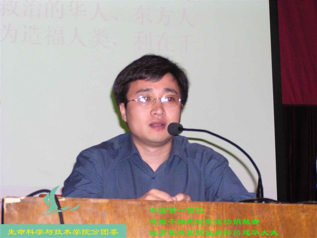 出席本次活动的中华骨髓库第100位捐献者,吕建华大夫向大家讲述了他的亲身经历,并引用资料库的口号“考虑成熟、志愿加入、义无返顾、初衷不变”对同学们作了积极动员。