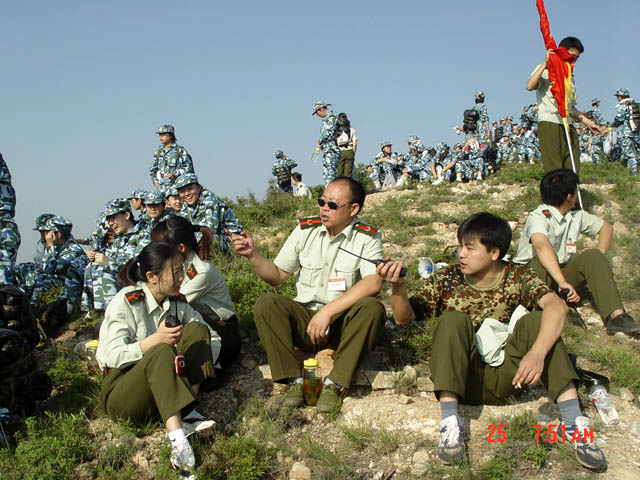 军训总指挥刘明奇和炮兵指挥学院训练部副部长郑垣模亲临现场指挥。