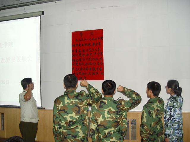 7月29日上午,军训旅在炮兵指挥学院组织部分学院学术报告厅进行党课教育