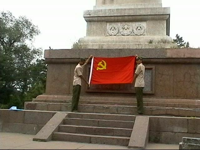 晚间,部分党员代表请到炮兵指挥学院教官在苏宁烈士塑像前介绍英雄事迹