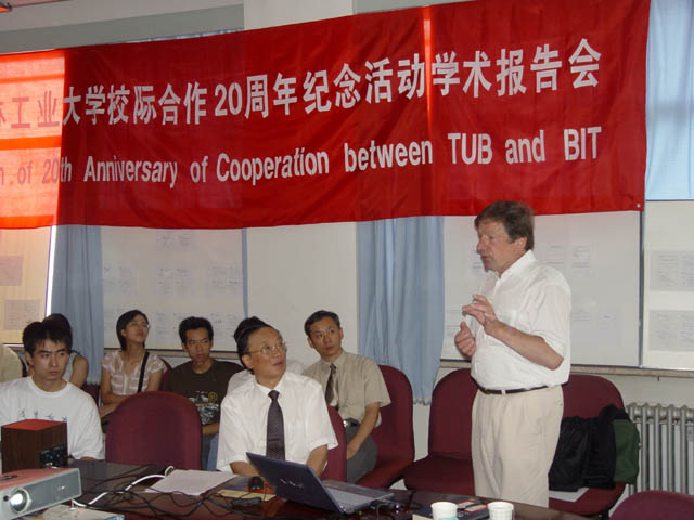 TUB代表团成员在进行通讯主题的学术报告会,我校校长匡镜明教授主持会议。